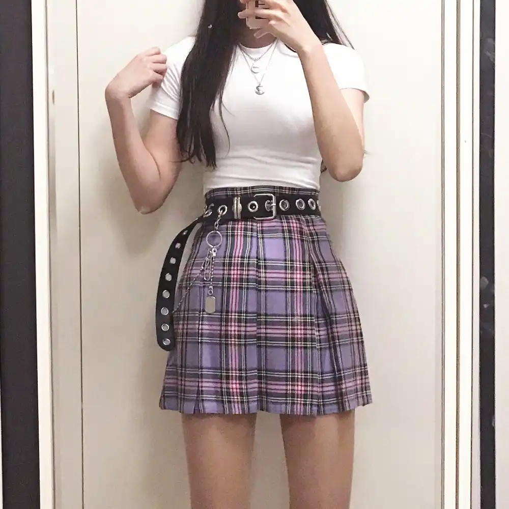 Ins quente streetwear coreano kpop preppy estilo roxo xadrez saia bonito kawaii plissado mini saia de cintura alta curta mulher|Saias| - AliExpress saia xadrez kpop