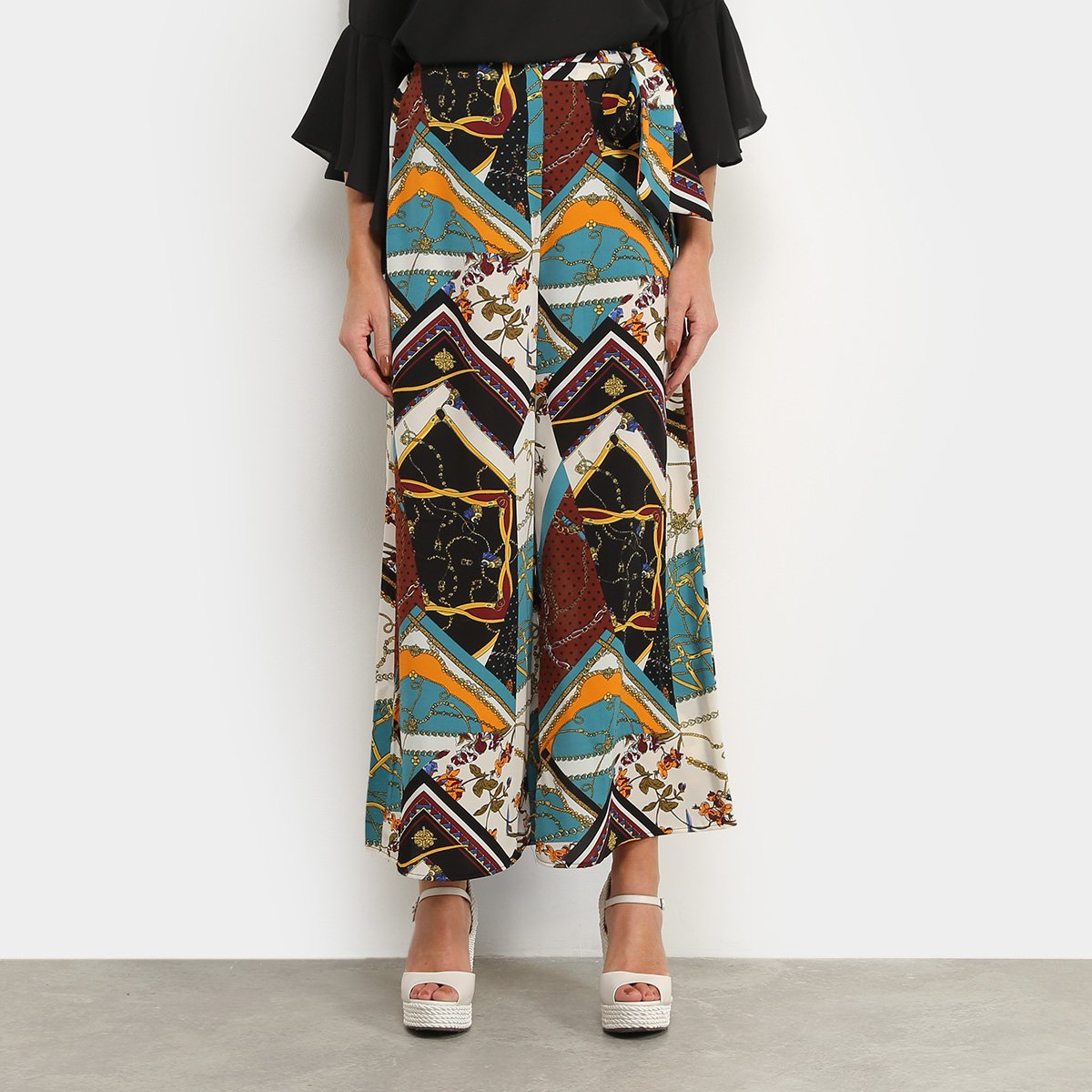 Calça Pantalona Floral Feminina Com Babado Na Barra - Compre Agora - Feira da Madrugada SP