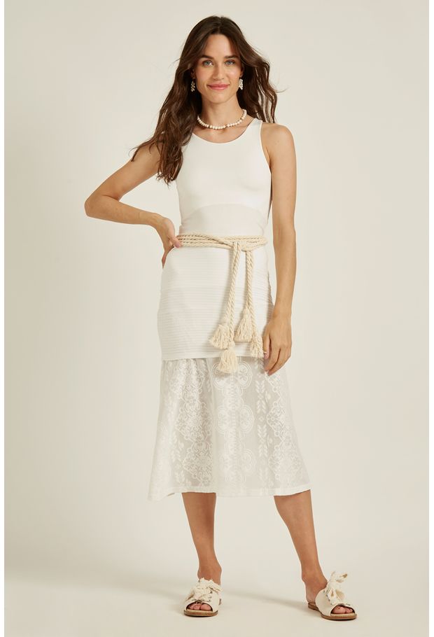 Saia Midi com pala Off White Milena - peepou saia midi com pala