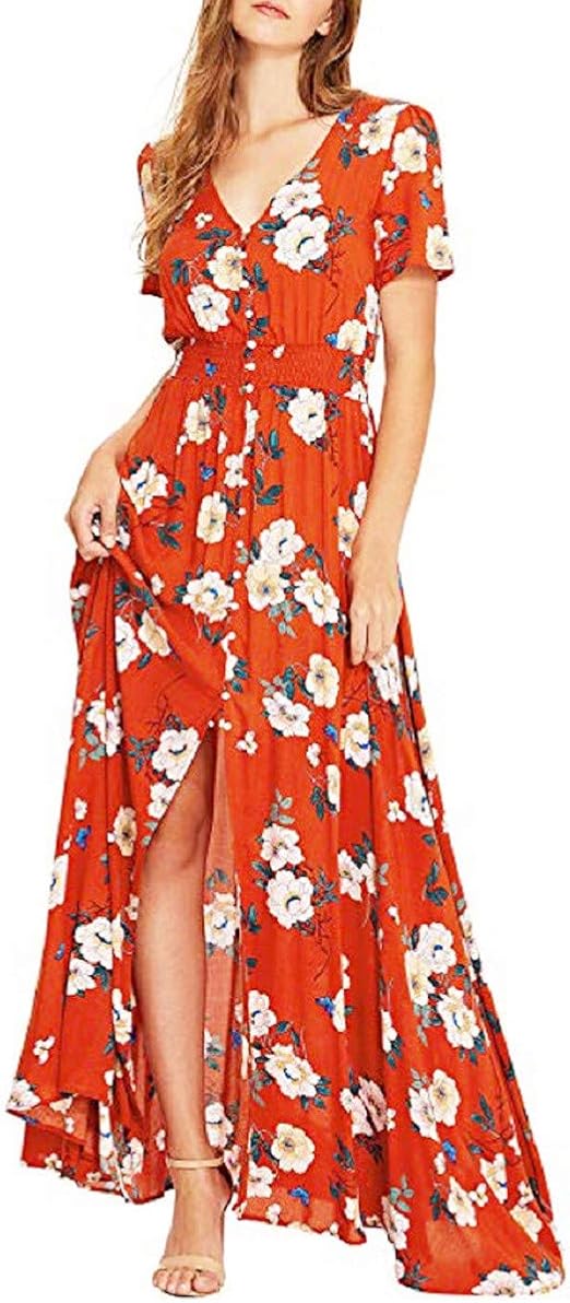Vestidos Verano Mujer 2019-Ronamick Botón de Mujer Impreso Aberturas Elegante Vestido de Fiestapijama Mujer Vestidos Casual Verano Manga Corta Mujer Sexy Mujer Ropa Mujer Tallas Grandes(Rojo,Xxl): Amazon.es: Bricolaje y herramientas amazon vestidos de verano