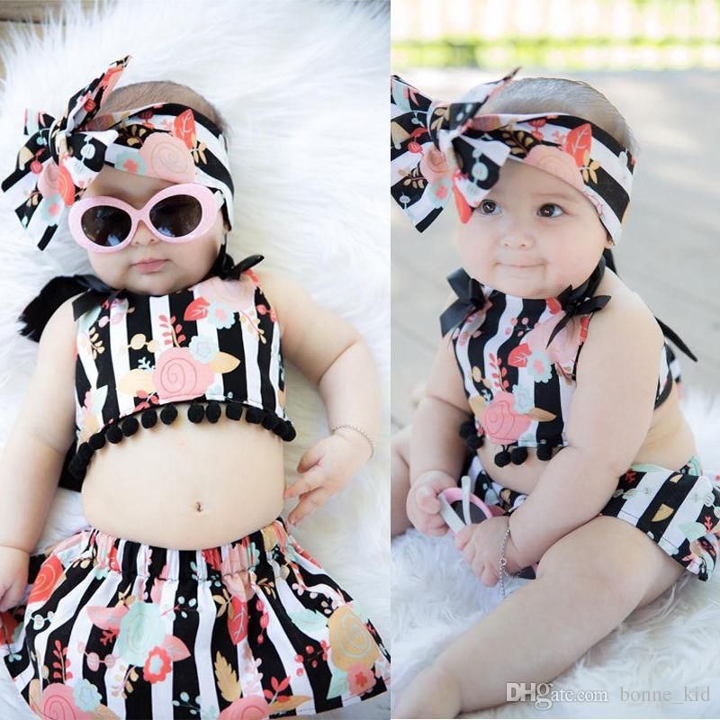 Compre Lindo Bebê Meninas Top + Saia Roupa Listrado Vestido Floral Roupa Infantil Crianças Menina Roupas Da Criança Crianças 2018 Boutique De Verão De Tyfactory, $27,09 | Pt.Dhgate.Com roupa infantil de criança
