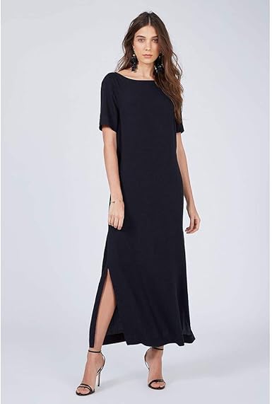 Vestido Longo Básico Preto - 40 | Amazon.com.br vestido basico preto longo
