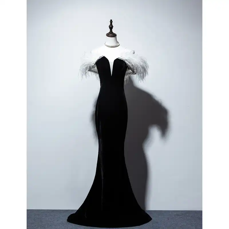 Novo avestruz pena preto veludo fora do ombro sereia vestidos longos de festa rendas até celebridade vestidos de festa à noite 2020|Inspirados em Celebridades| - AliExpress vestido preto veludo longo
