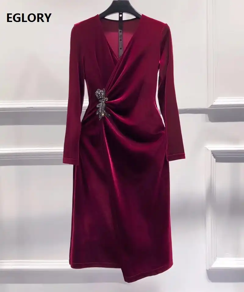 Vestido de veludo 2019 outono inverno festa de natal vestidos de festa feminina com decote em v diamante miçangas vestido de manga longa vinho vermelho roxo|Vestidos| - AliExpress vestidos de inverno para festa