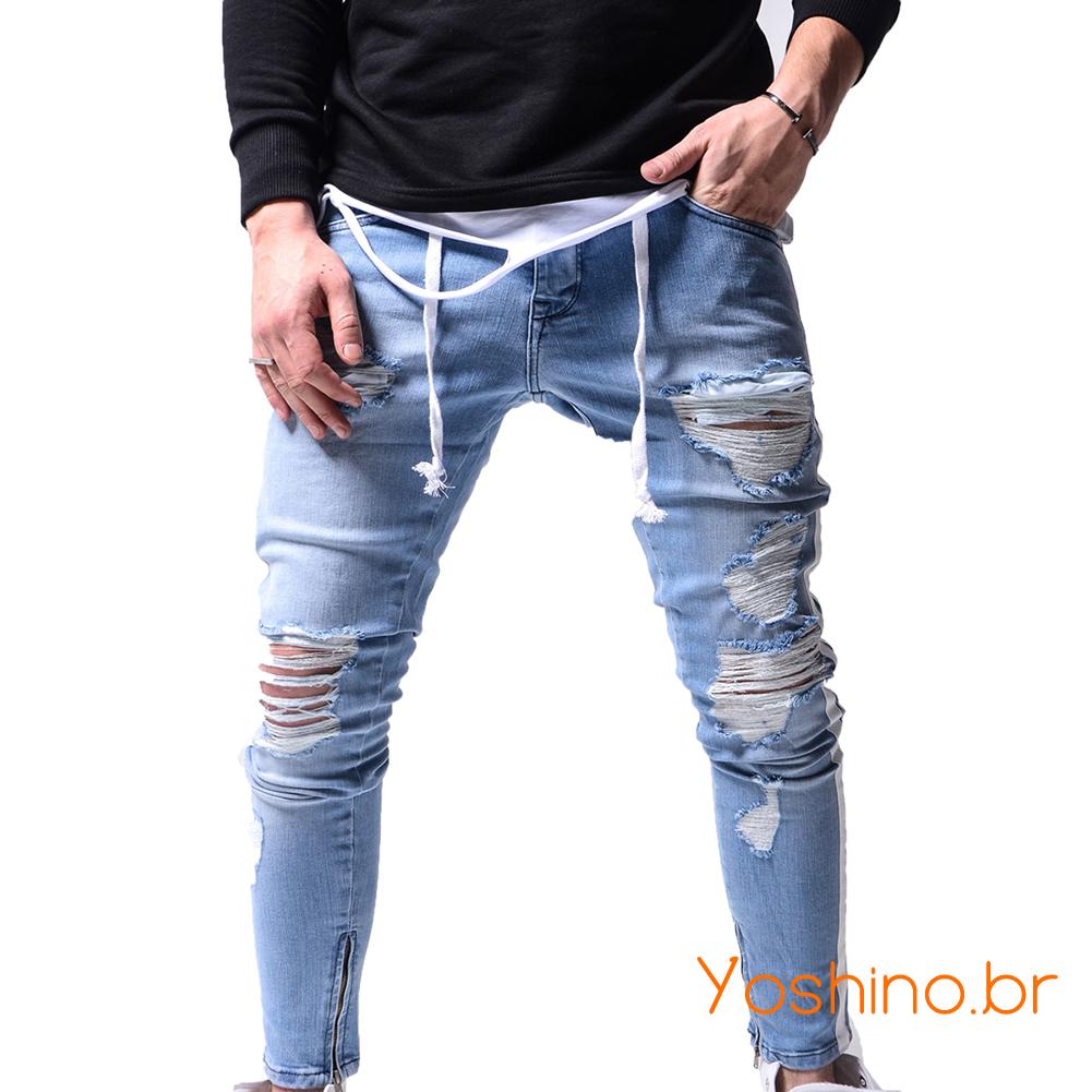 Ld- Calça Jeans Masculina Cintura Alta Rasgadas Para Masculino, Azul Claro / Cinza | Shopee Brasil calça jeans cintura alta masculina