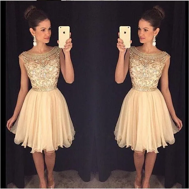 Beaded Bodice Champagne Short Length Homecoming Dress With Cap Sleeve Vestido De Festa Curto 2017|champagne dress|champagne wedding dresschampagne cristal - AliExpress vestido de festa no aliexpress