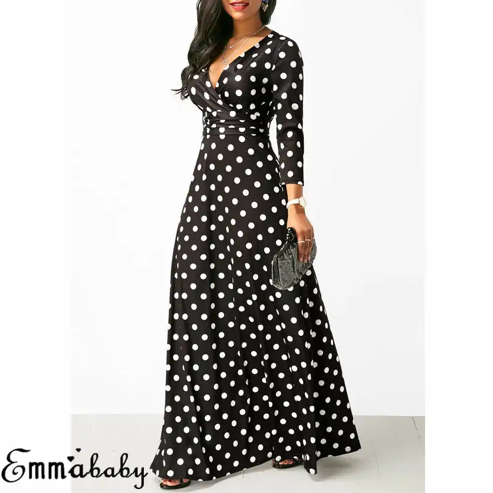 Vestido feminino de bolinhas, para o outono, manga longa, boho, gola v, sexy, slim, vestido longo da moda|Vestidos| - AliExpress vestido boho manga longa