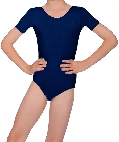 Girls Cotton Short Sleeve Ballet/Dance navy leotard
