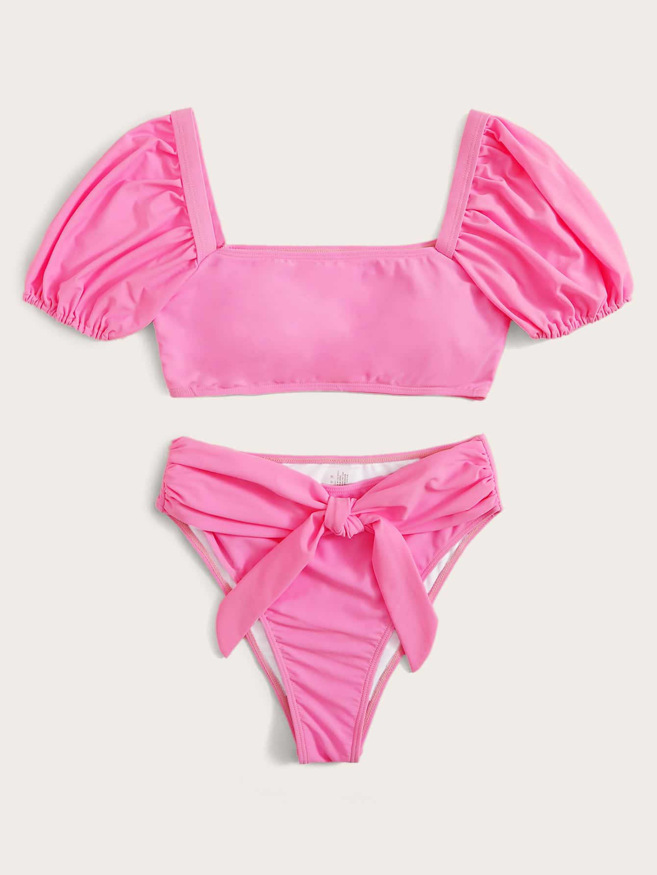 Puff Sleeve Tie Front Tee Bikini puff sleeve bathing suit