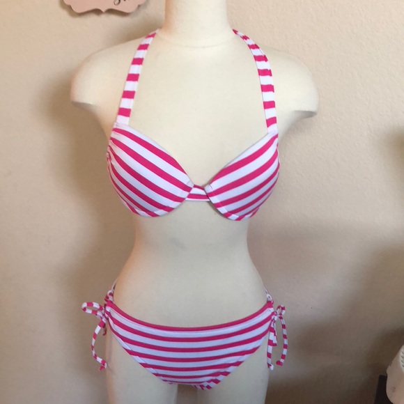 Victoria's Secret swimsuit | Victoria white and pink striped bikini