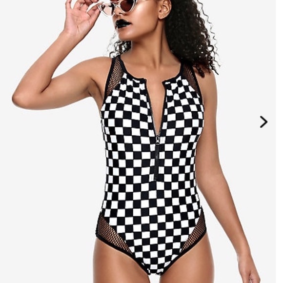 Hot Topic Checkered Black And White One black zip up bathing suit
