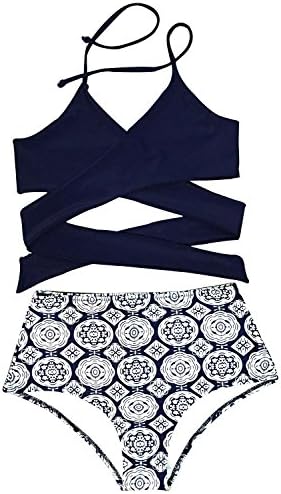 CUPSHE Women's Front Cross High-Waisted high waist cross front strappy neck bikini set