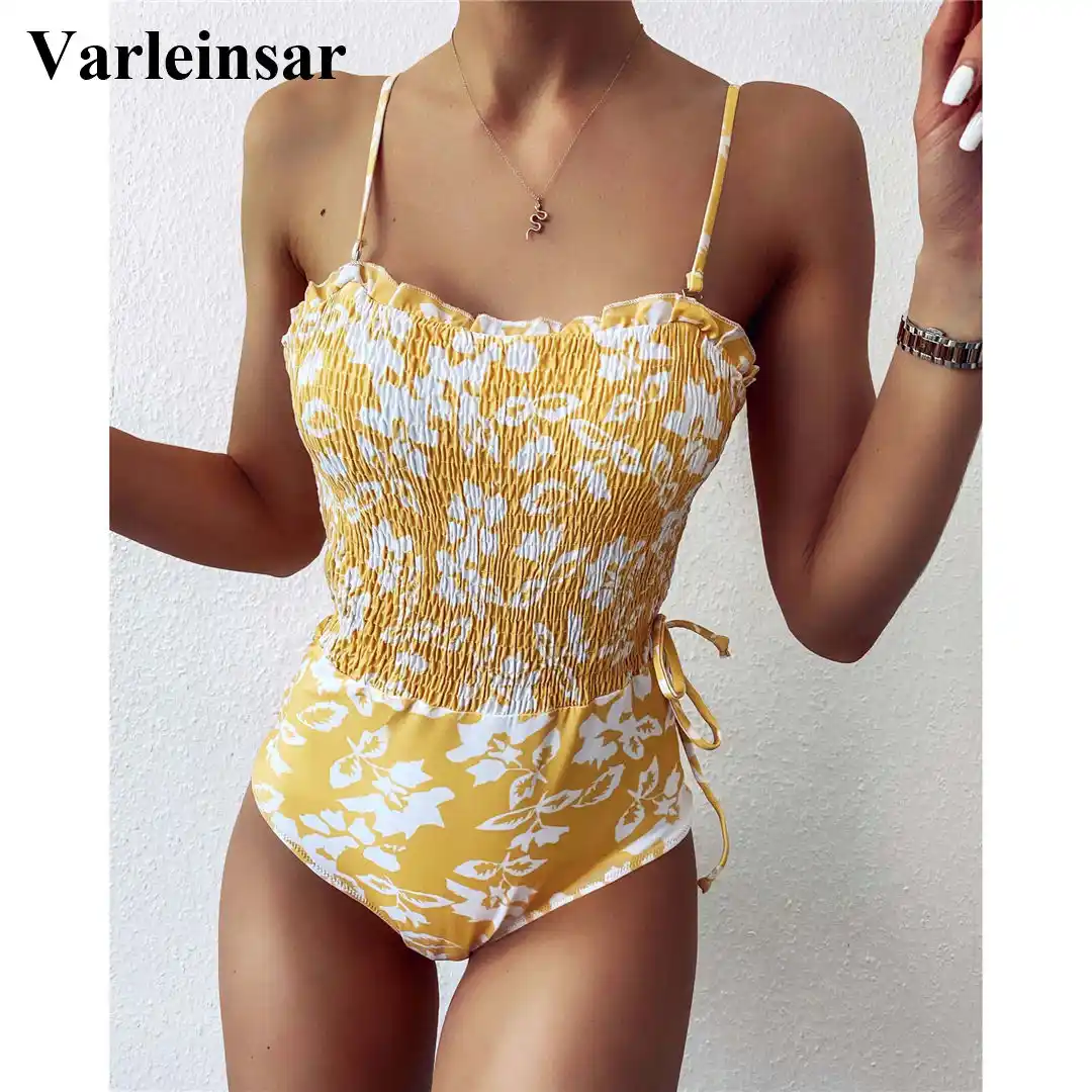 New Sexy 2020 Yellow Flower Wrinkled yellow flower swimsuit