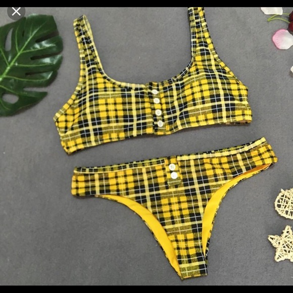 yellow plaid bathing suit