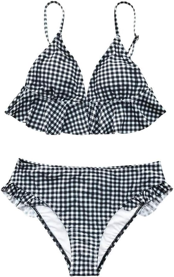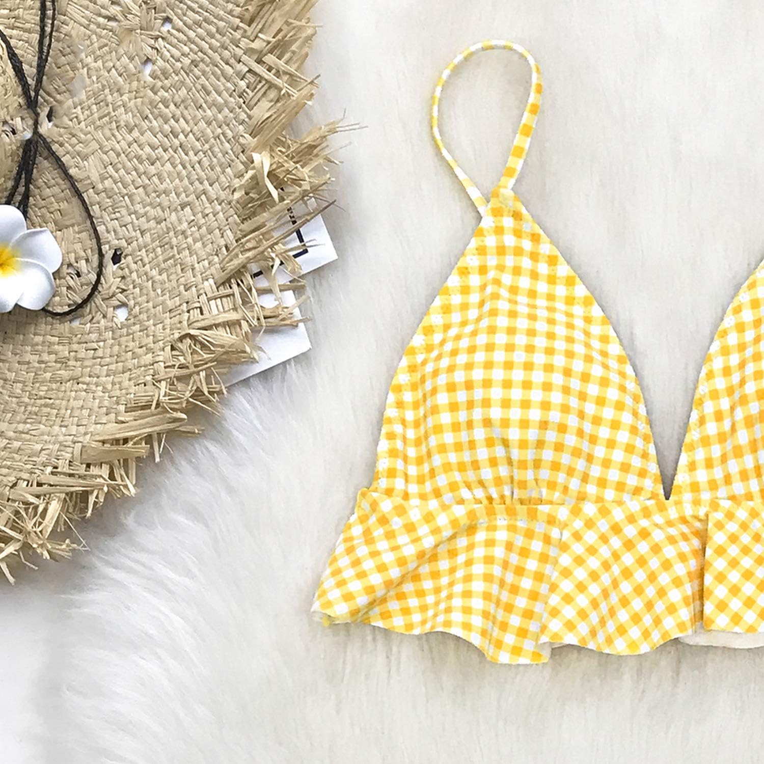 Ladies Swimming Costume,Yellow Gingham yellow gingham ruffle bikini