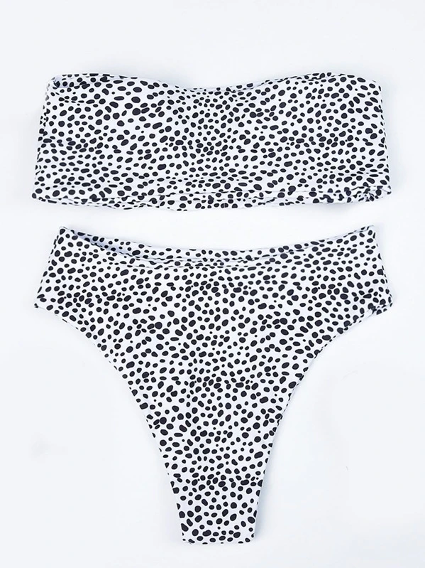Cow Pattern Scoop Neck High Waist shein black and white swimsuit