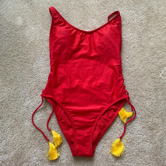 Sexy Cheeky Swimsuit Laced cheeky red one piece swimsuit