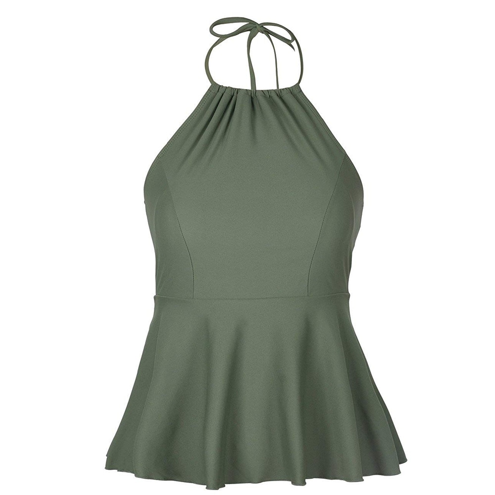 Tankini Top High-Neck Peplum Swimwear high neck peplum tankini
