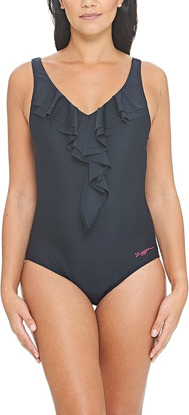Zoggs Womens Coolum Frill Classicback black frill swimming costume