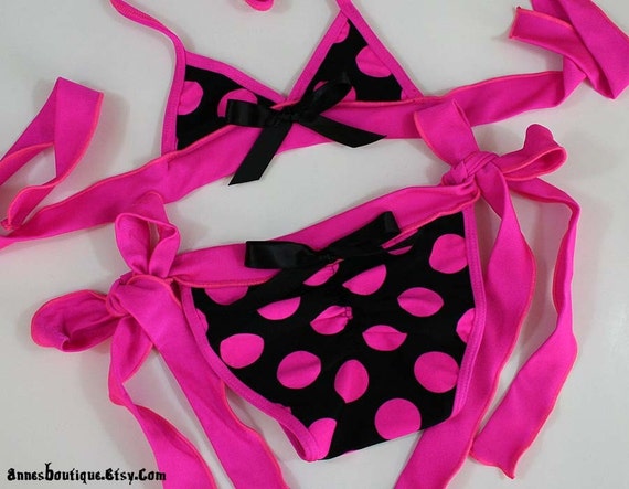 Children's Hot Pink Polka Dot Bow Two hot pink two piece bikini