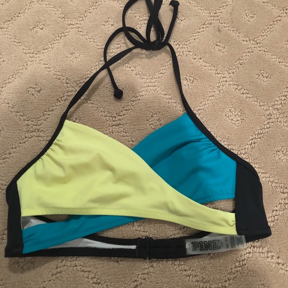 Pink Blue And Yellow Cross Over Bathing pink and yellow bathing suit