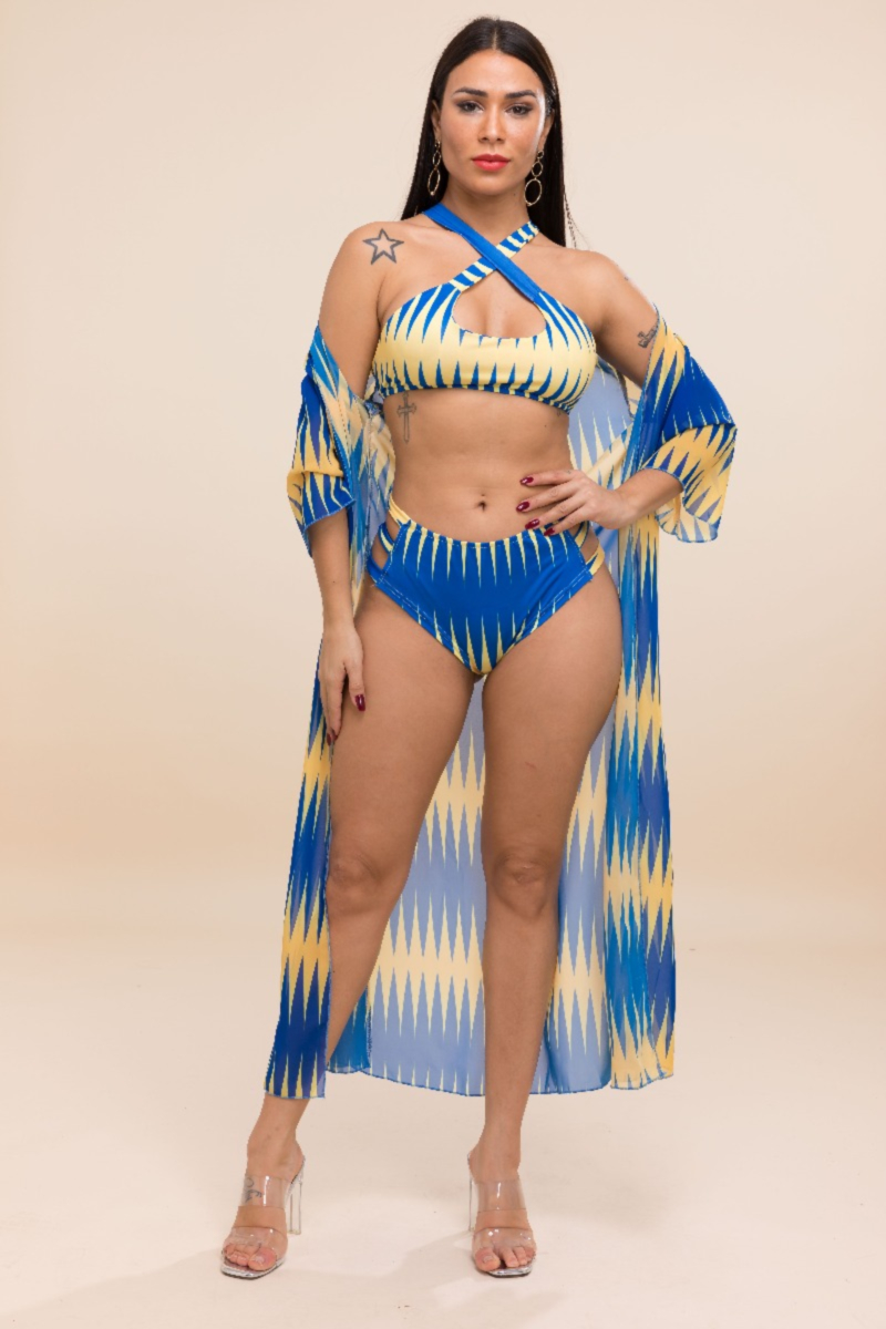 Blue Floral Print Twisted High Waist high waisted bikini with cover up