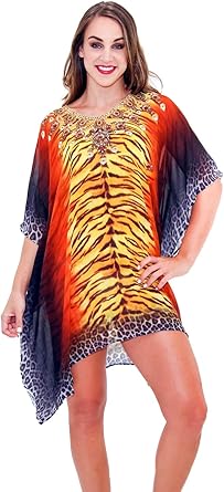La Moda Animal Print Sheer Kaftan Beach best amazon beach cover ups