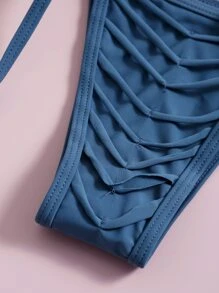 Strappy Self Tie Cut-Out Top Bikini Set shein cut out self tie bikini