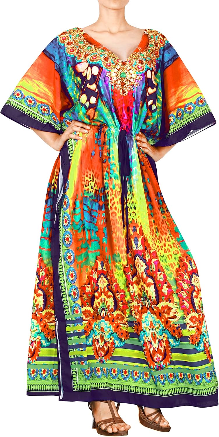 LA LEELA Women's One Size Kaftan plus size kaftans and cover ups uk