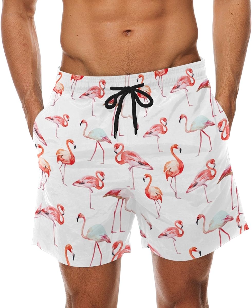 Flamingo Pattern Print Men's Swim mens swim trunks with flamingos