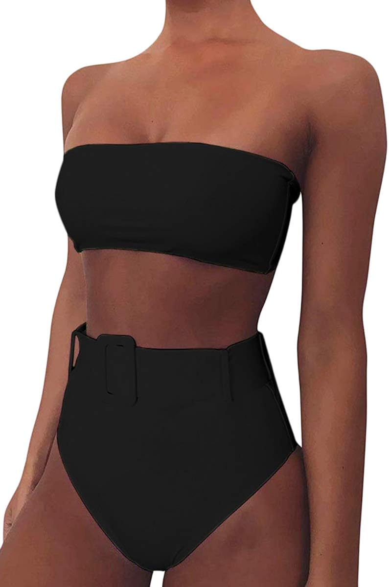 FAFOFA Womens Sexy Bandeau High Waist belted two piece swimsuit