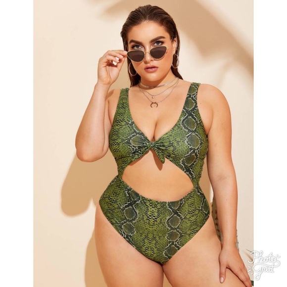 SHEIN Swim | Plussize Snakeskin Cutout snakeskin bathing suit shein