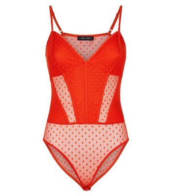 Red Spot Mesh Bodysuit New Look red bodysuit new look