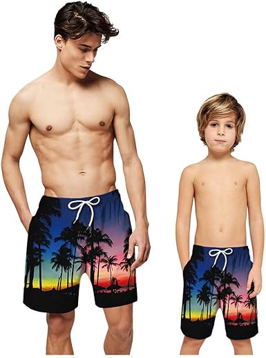 Kids Boys' 3D Hawaiian Print Swimwear hawaiian print swim trunks