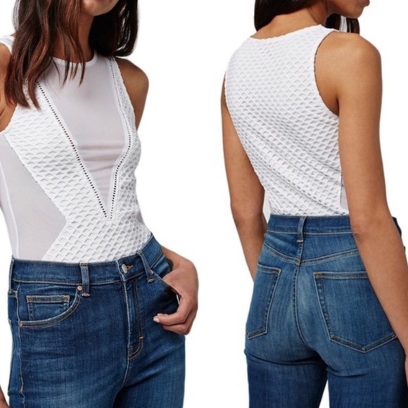 Topshop White Mesh Side Deep Neck Cut topshop white bodysuit