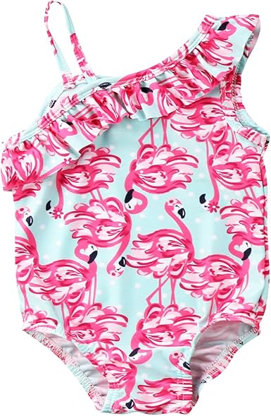 Kids Baby Girls One Shoulder Flamingo little girl swimsuits size 7
