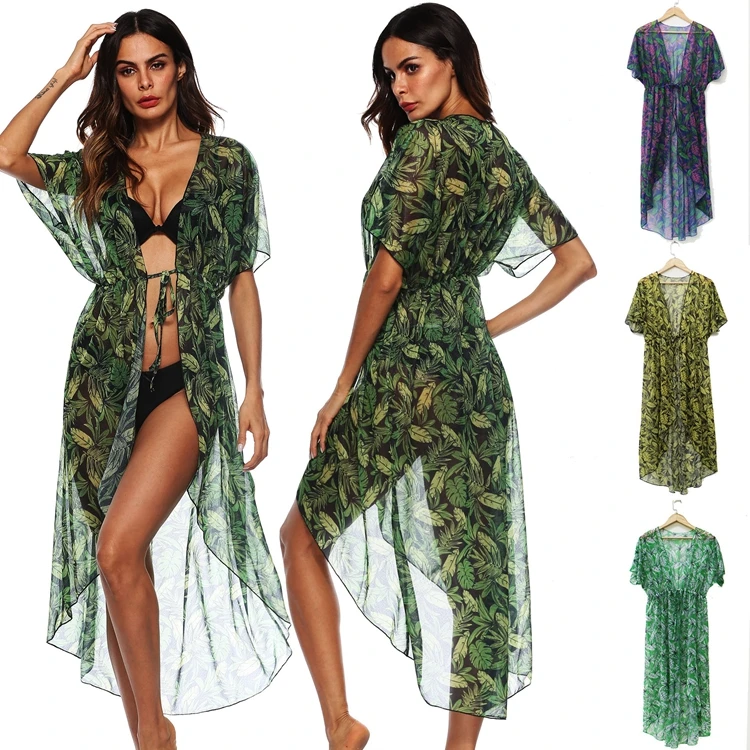 RUUHEE Women Cover Up Palm Tree Print palm print beach cover up