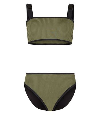 Girls Khaki Ribbed Buckle Bikini Set new look bikini set