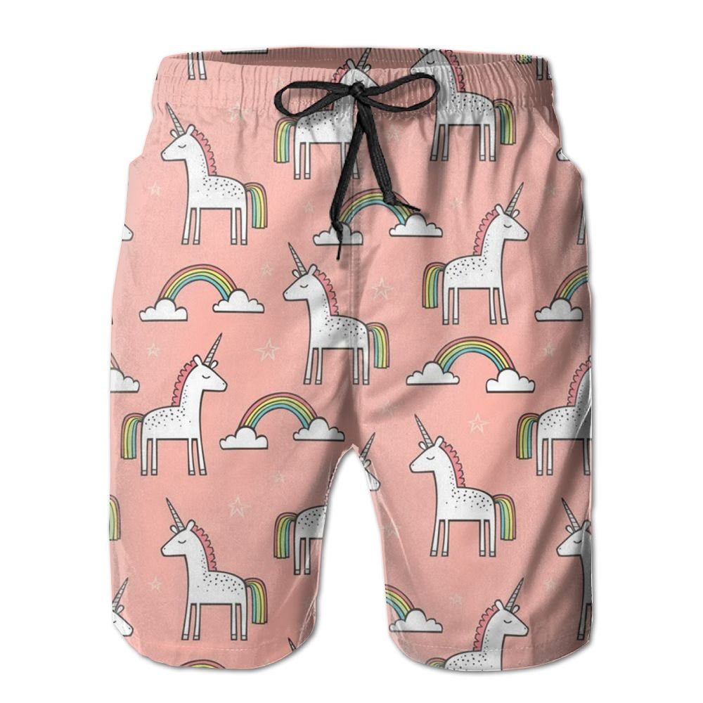 Pink Unicorn Mens Quick Dry Swim Trunks