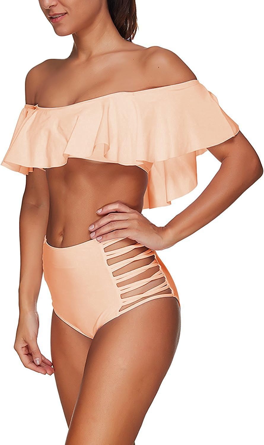 Bikini Set Ruffle Off Shoulder Top off shoulder swimsuit with shorts