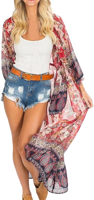 Feitong Women Chiffon Cardigan Swimwear denim swimsuit cover up
