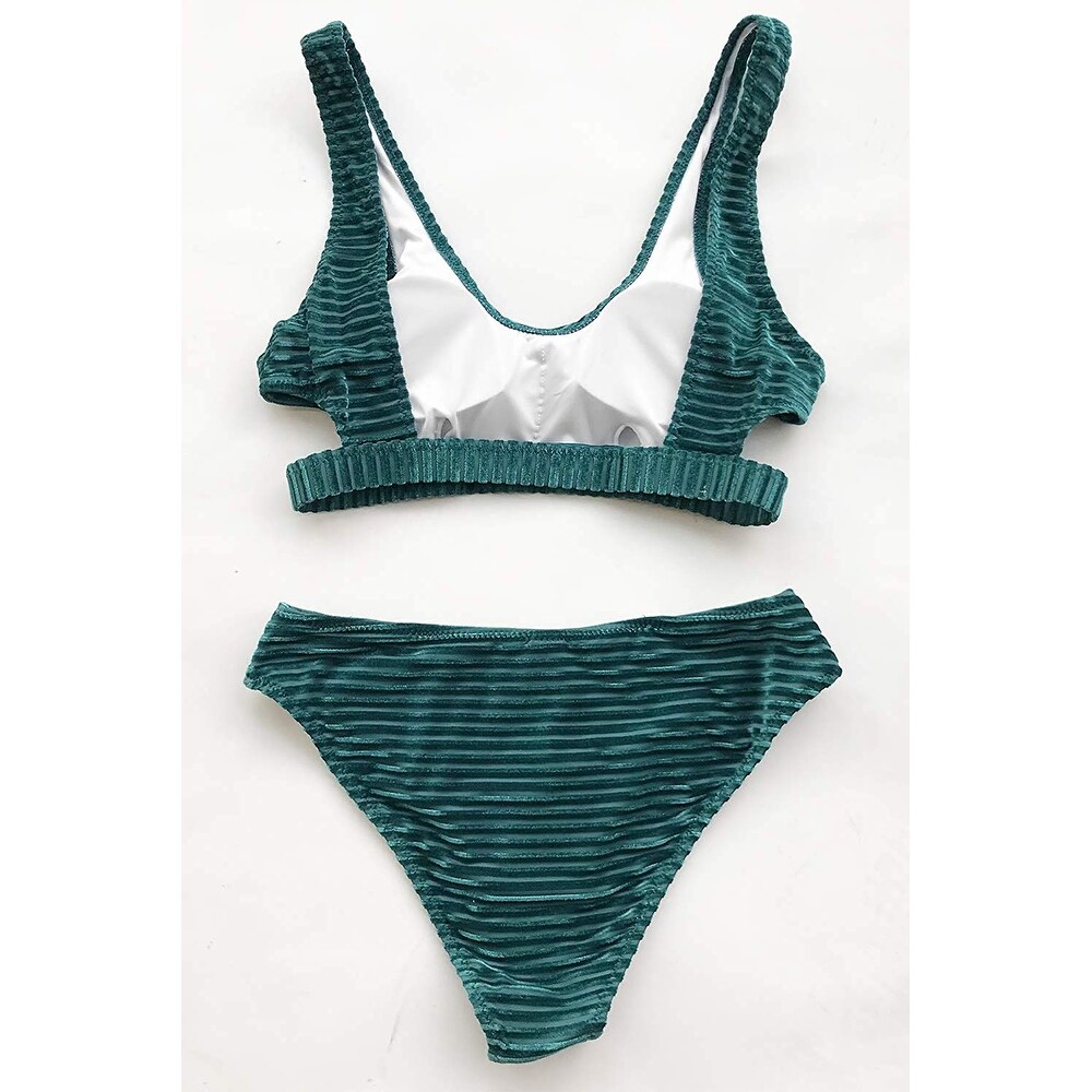Cupshe High Waisted Green Velvet Bikini cupshe velvet bikini