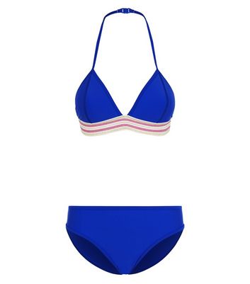 Girls Bright Blue Colour Block Stripe blue colour bikini
