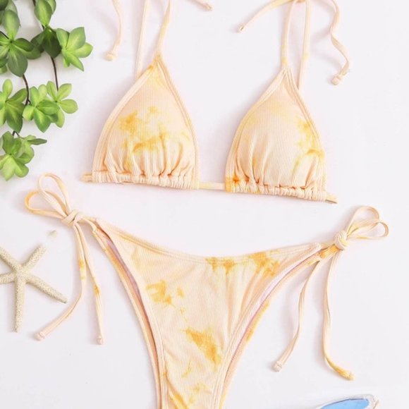 Orange And Yellow Tie Dye Bikini Shein tie dye bikini shein