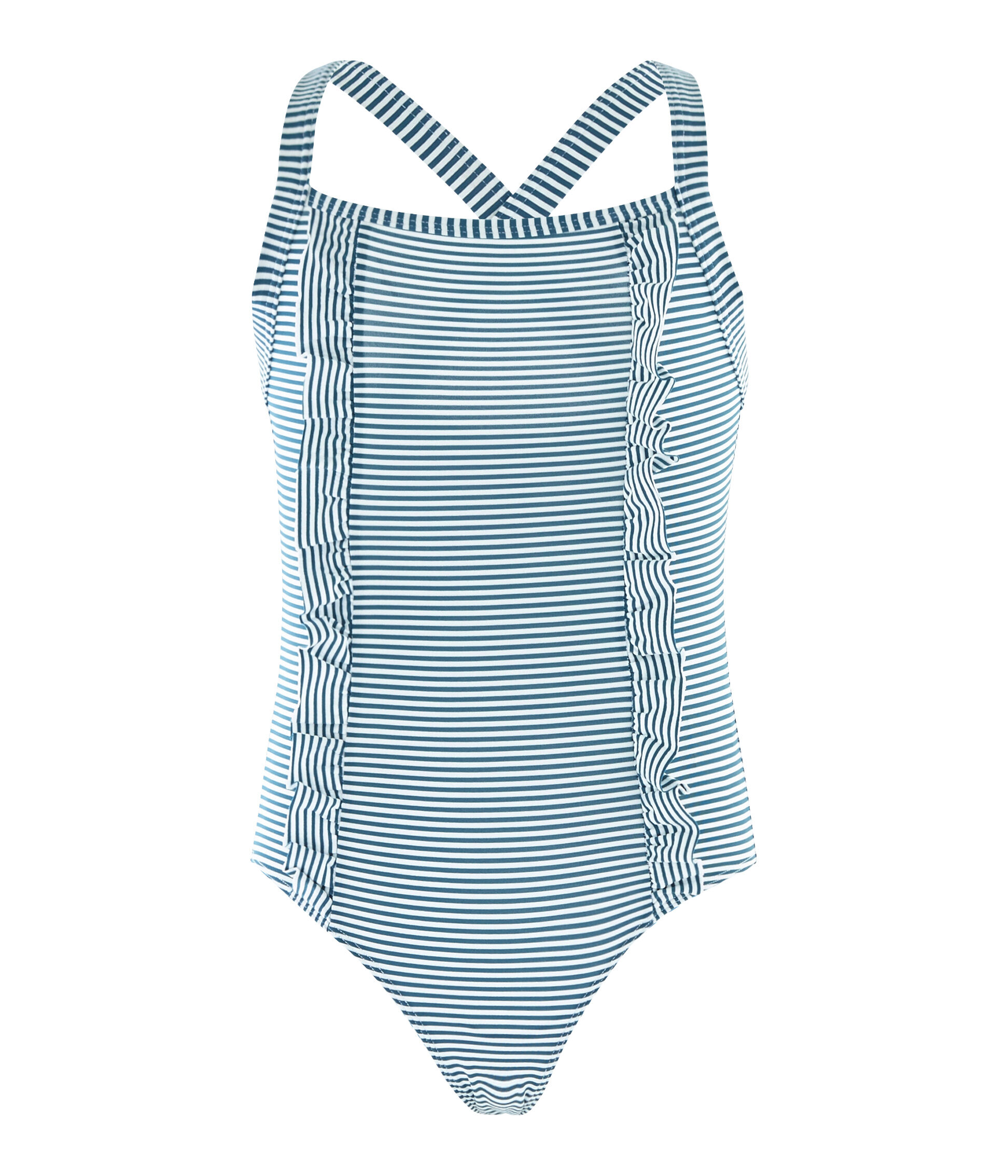 Girls' One-Piece Swimsuit | Petit Bateau green and white one piece swimsuit