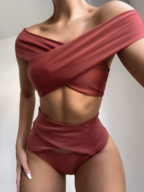 Bardot Bikini Top - Wine Red – BIKINI DOLLS red bardot swimsuit