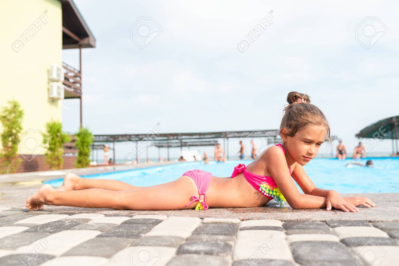 Cute Little Girl In Pink Bathing Suit young girls bathing suits