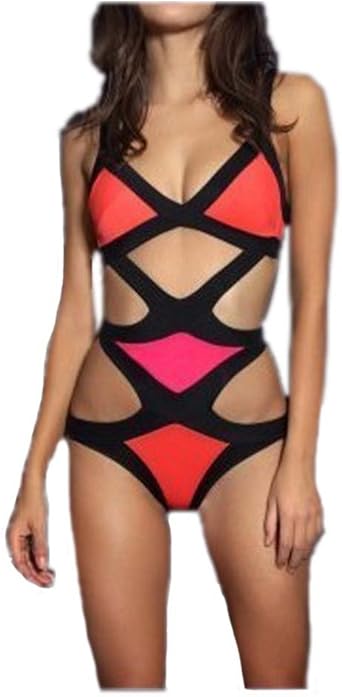 Whoinshop Womens One Piece Colorful red bandage swimsuit