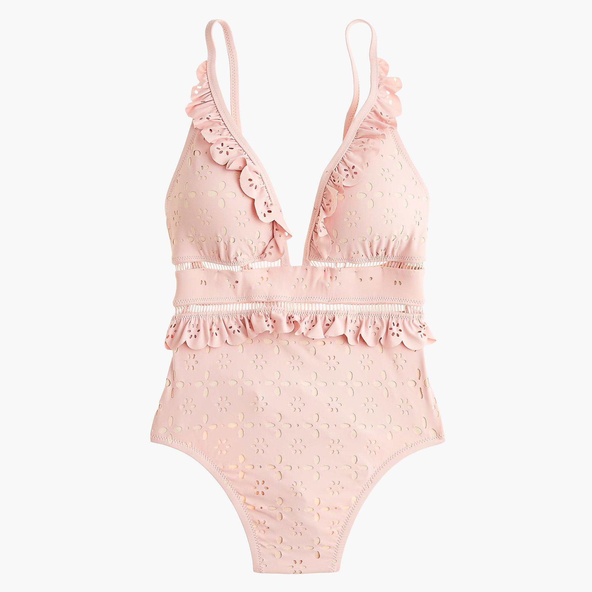 J.Crew Synthetic Scalloped Ruffle blush pink one piece swimsuit