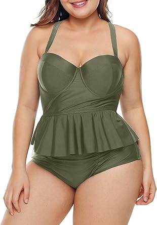 Plus Women Solid Moulded Cups Plus Size tankini m
